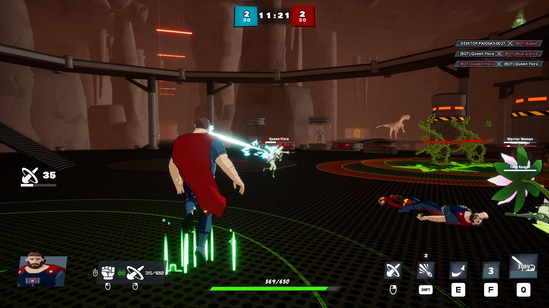 Pick between legally distinct versions of Superman, Flash, Batman, and Wonder Woman and battle it out in a 4v4 superhero shooter!